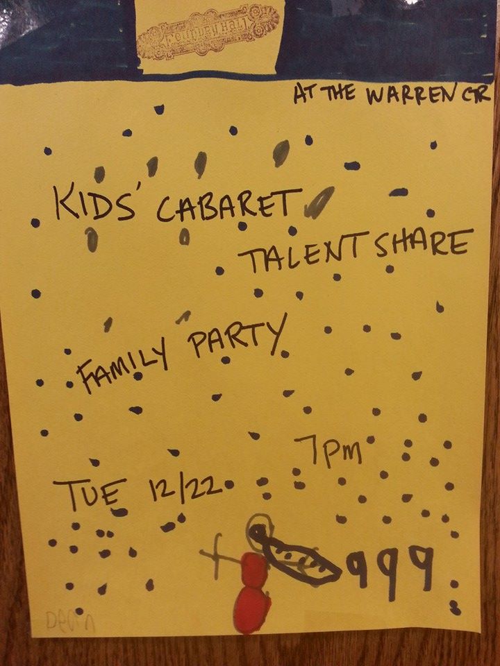 Our monthly Kids’ Cabaret Talent Share continued through the winter with lots of fun music making, story telling and puppeteering creating a time and place for free creativity with friends and family.